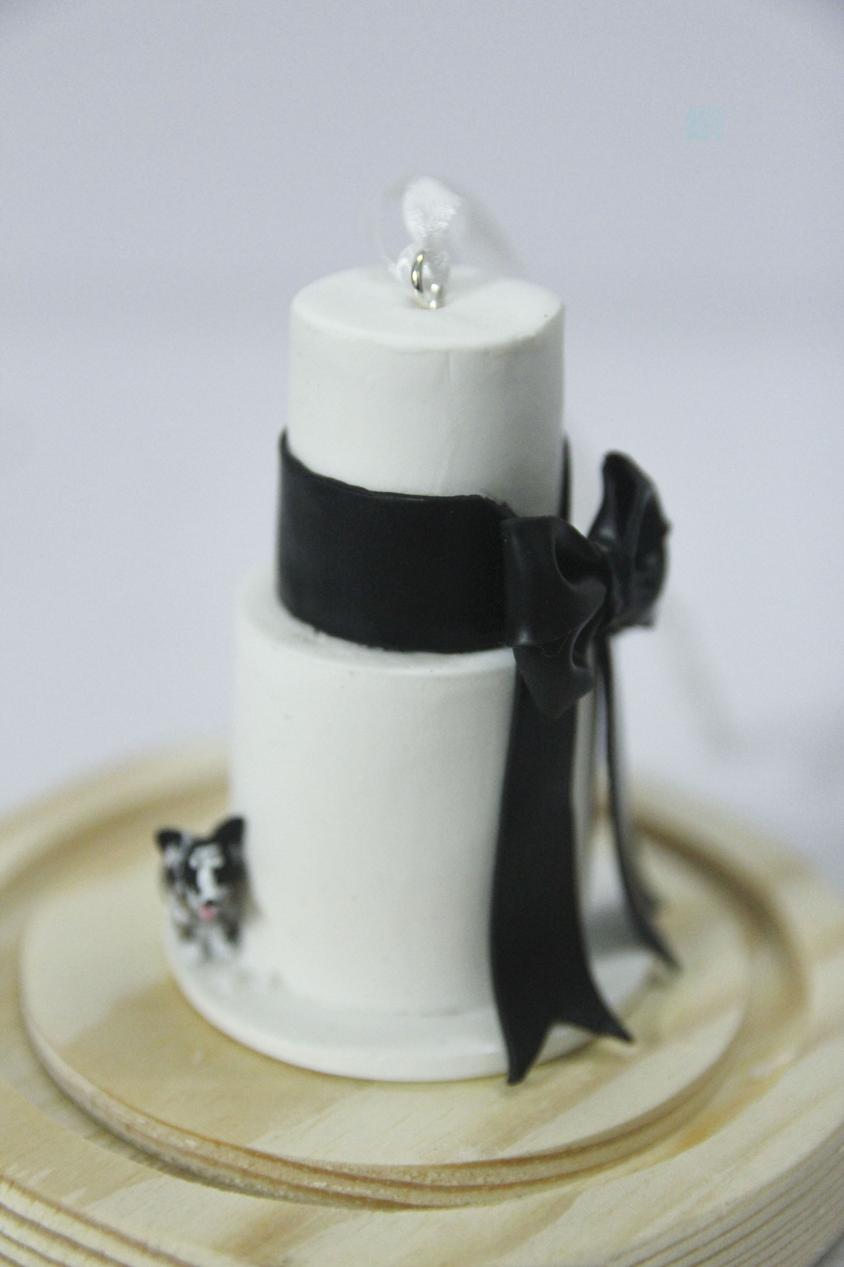 3D Wedding Cake Ornament with a dog (2 tiers), wedding cake replica