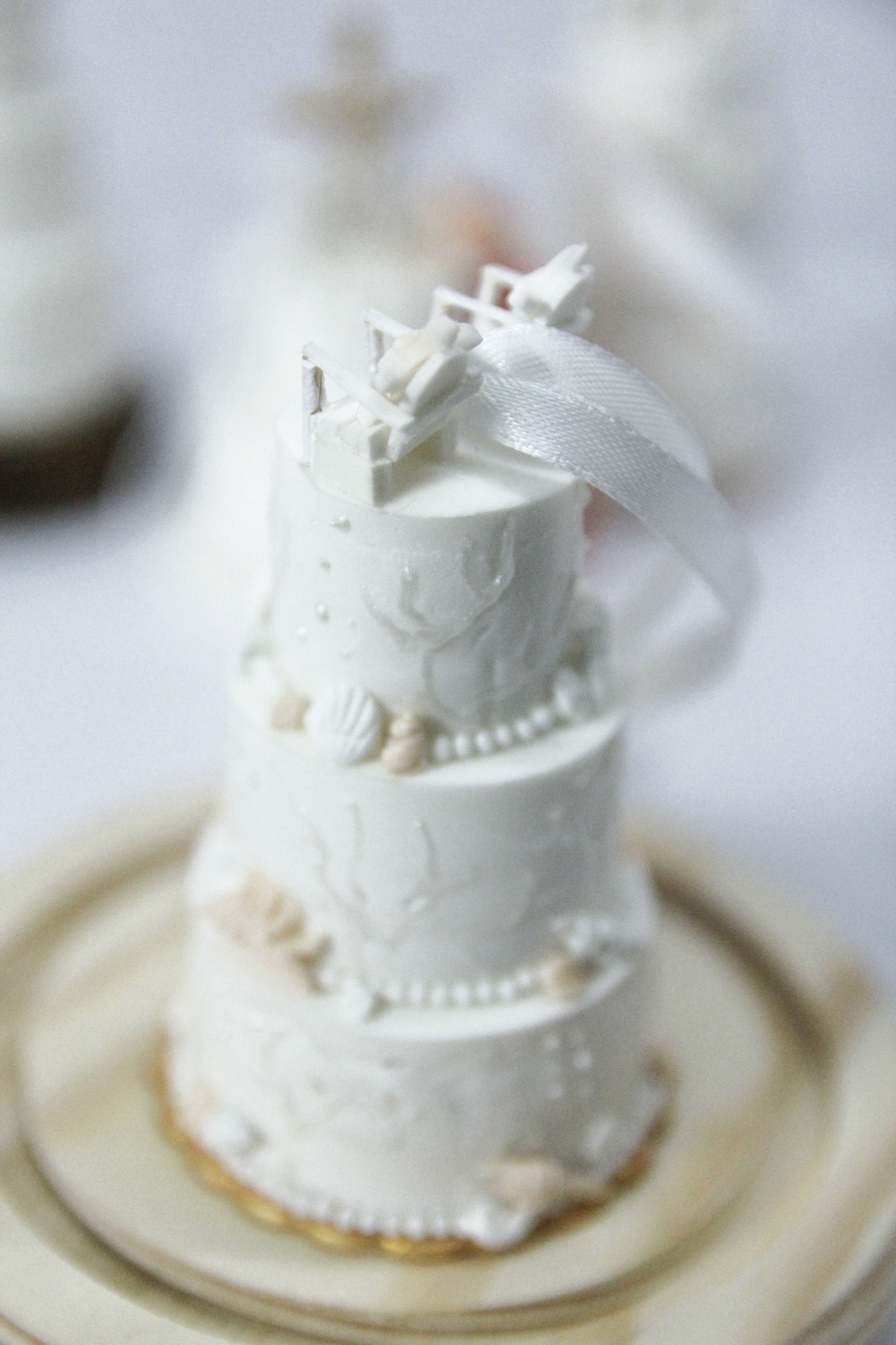 Beach Wedding cake replica ornament, 1st first anniversary newlyweds gift, custom Christmas ornament