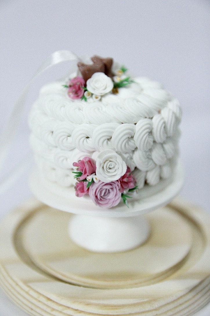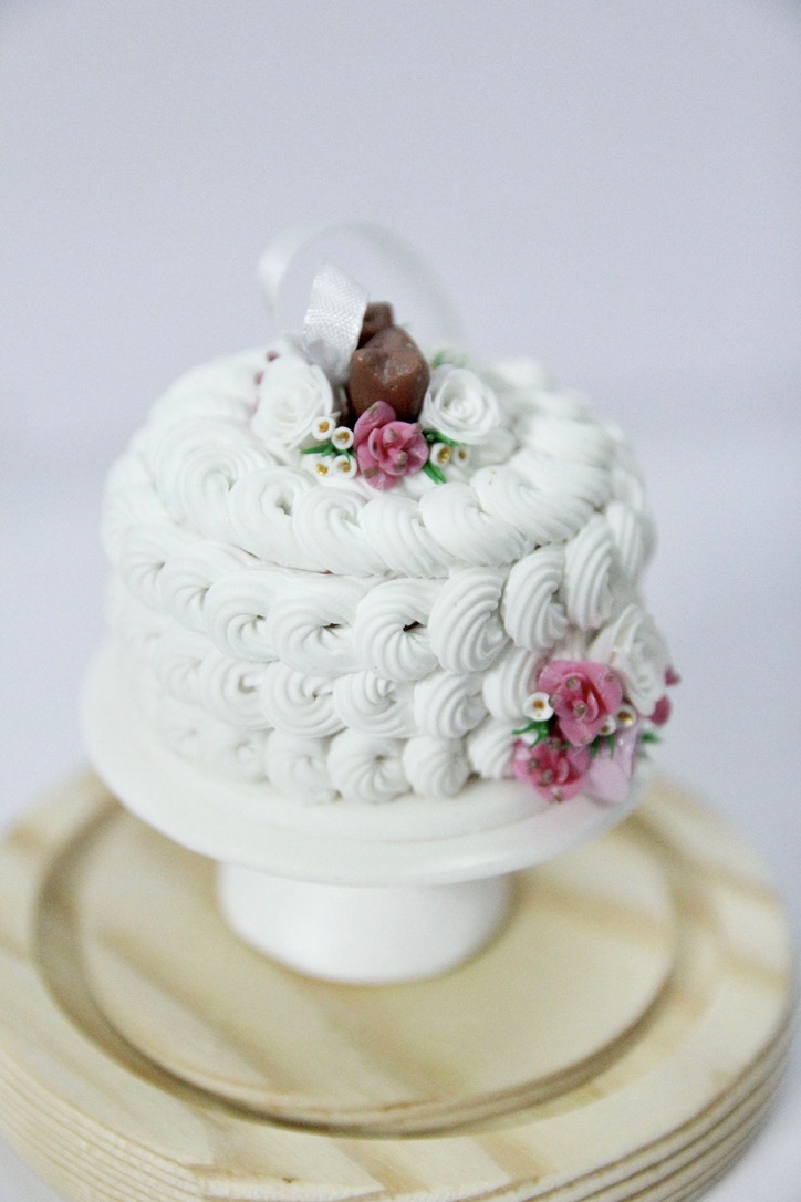 Custom 1 tier cake ornament with topper and high stand, First Christmas married ornament