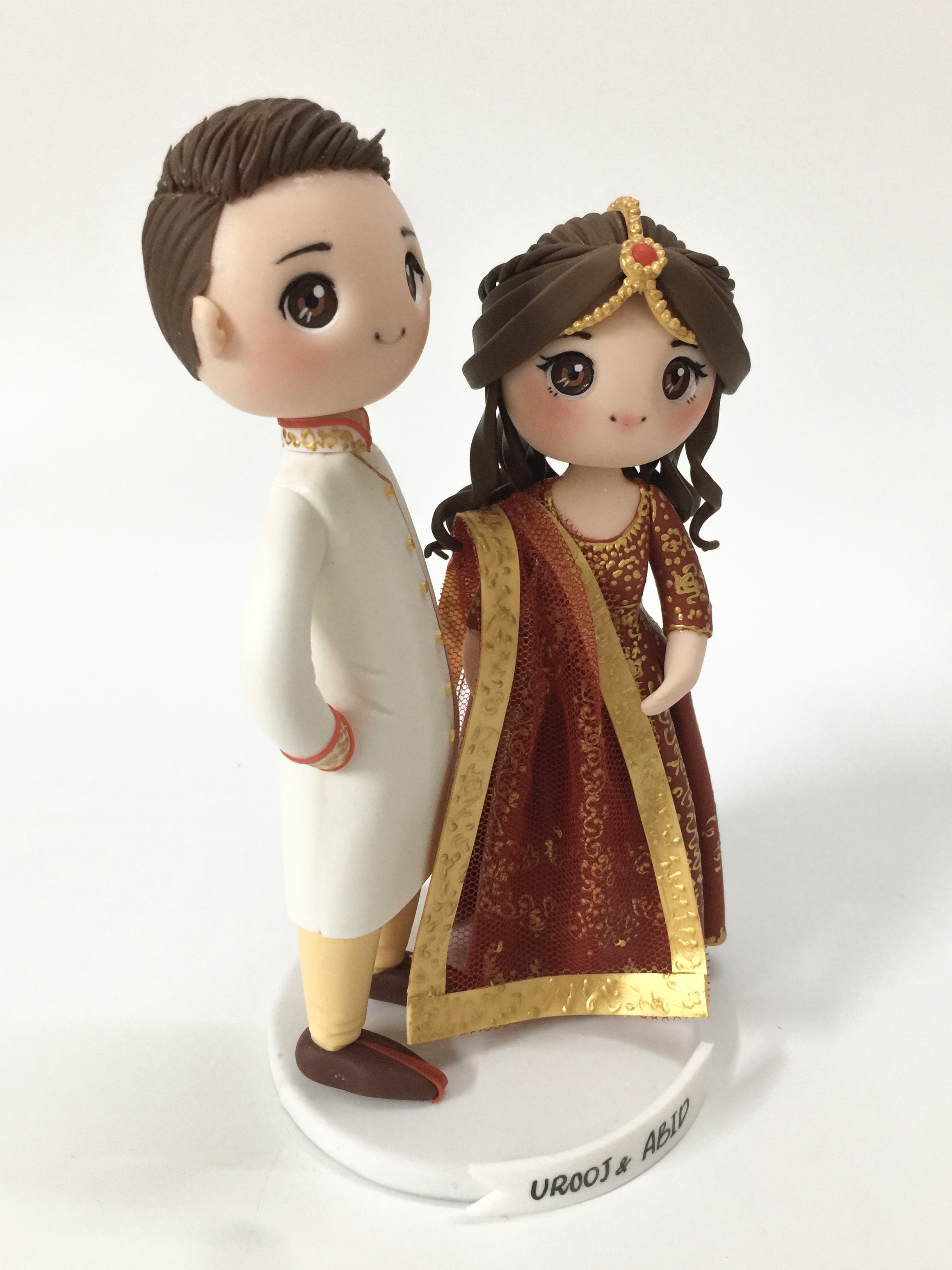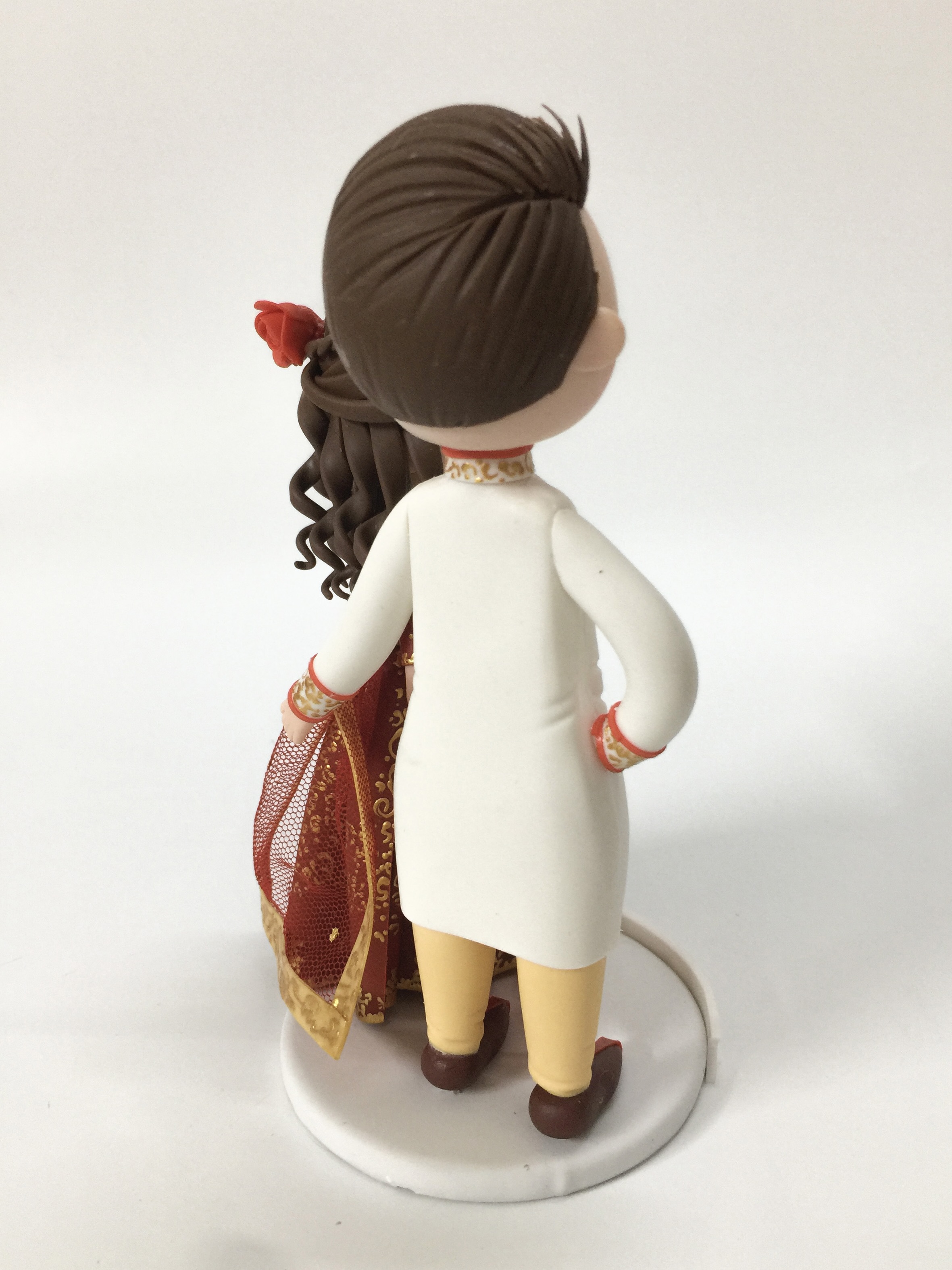 Embrace the richness of Indian culture with our Saree & Sherwani Indian Wedding Cake Topper. This stunning handcrafted figurine features a beautifully adorned bride in a vibrant saree and a dapper groom in a traditional sherwani, capturing the essence of a joyful Indian wedding. Perfect for topping off your wedding cake, this exquisite keepsake serves as a meaningful symbol of your special day, celebrating love and tradition. Ideal for couples looking to honor their heritage, this cake topper also makes for a thoughtful gift for Indian couples or as a centerpiece for traditional Asian wedding decor.